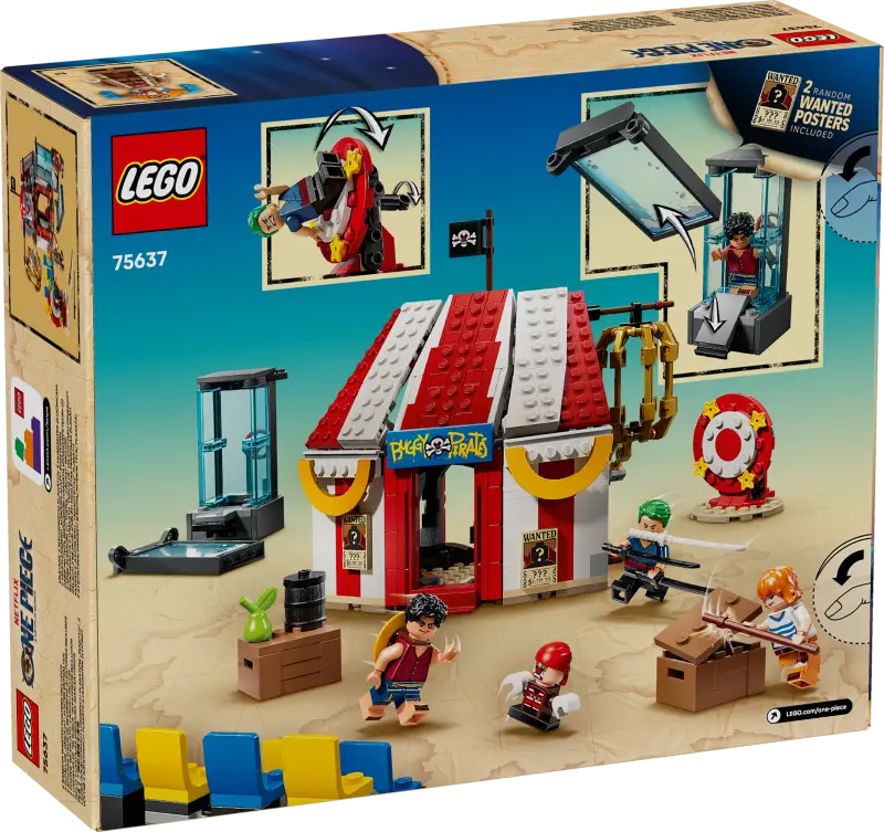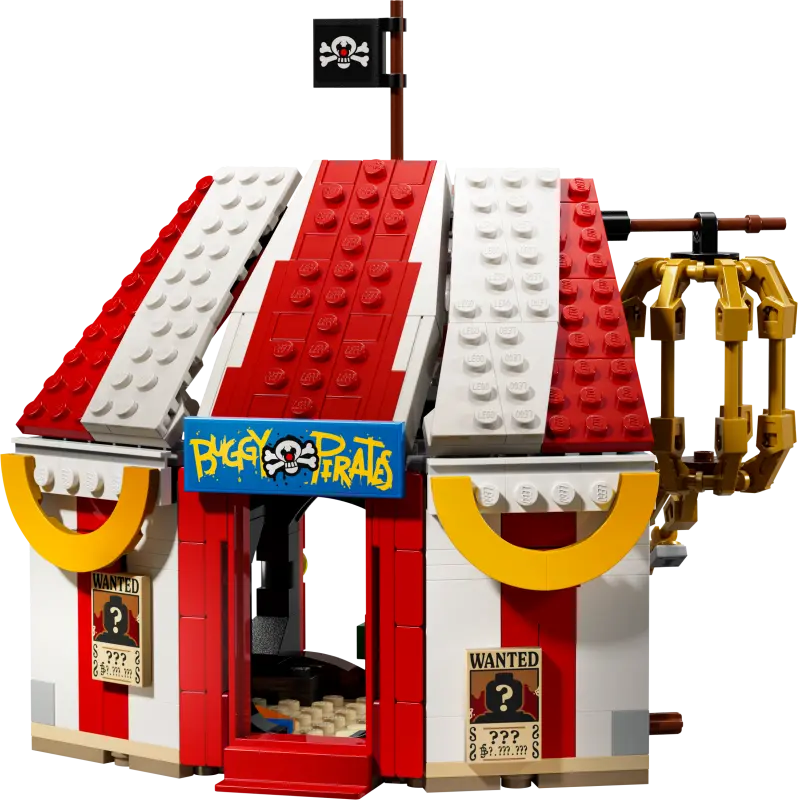 In de tent bevinden zich dozen en vaten met onderdelen om een kleinere versie van Buggy te bouwen. Daarnaast zijn er diverse wapens en accessoires, waaronder twee ‘Wantedposters. Voor extra digitaal plezier kunnen bouwers inzoomen, modellen in 3D bekijken en hun voortgang volgen via de intuïtieve LEGO Builder-app. De set bestaat uit 573 onderdelen.