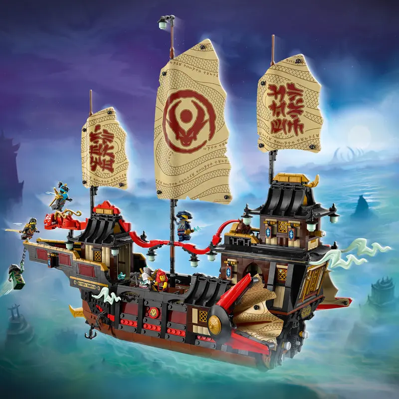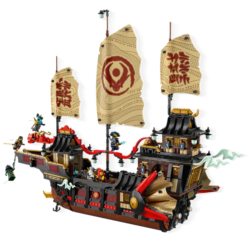 - De iconische Tempel Bounty: Bouw het legendarische schip van de ninja’s, compleet met geheime wapens, verborgen compartimenten en een draaiend roer.