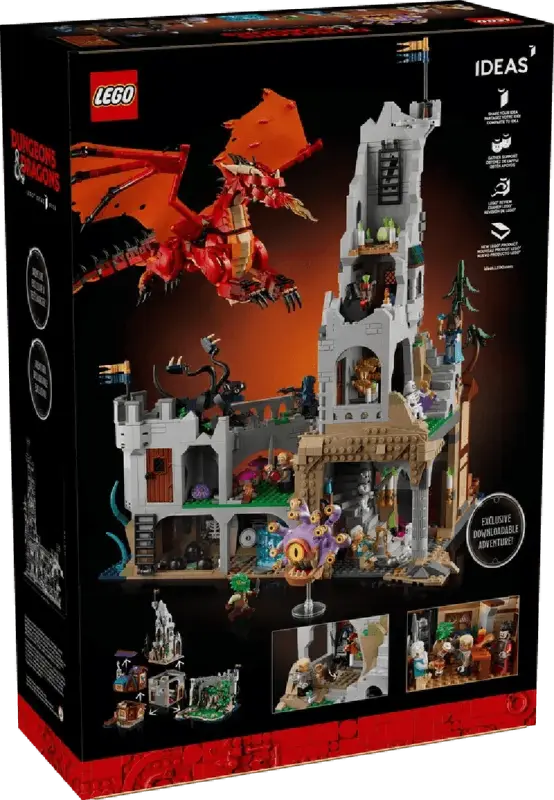Deze LEGO Ideas set is een eerbetoon aan het 50-jarig jubileum van Dungeons & Dragons. Het bevat een iconische rode draak, een herberg, een schatkist en diverse andere modulaire elementen die je kunt combineren om verschillende Dungeons & Dragons-avonturen na te spelen.