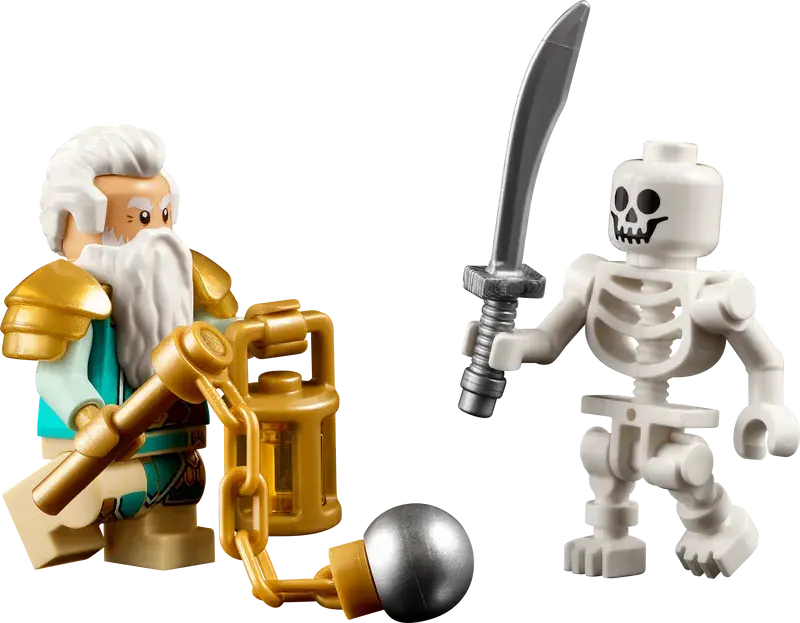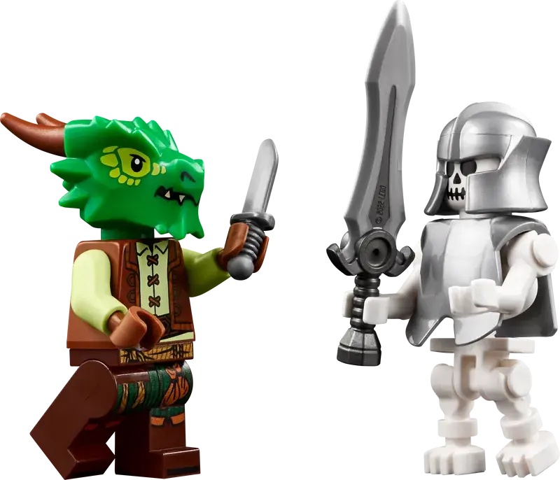 - 6 minifiguren: een ridder, een elf, een tovenaar, een dwerg, een barbaar en een bard, plus 4 skeletten