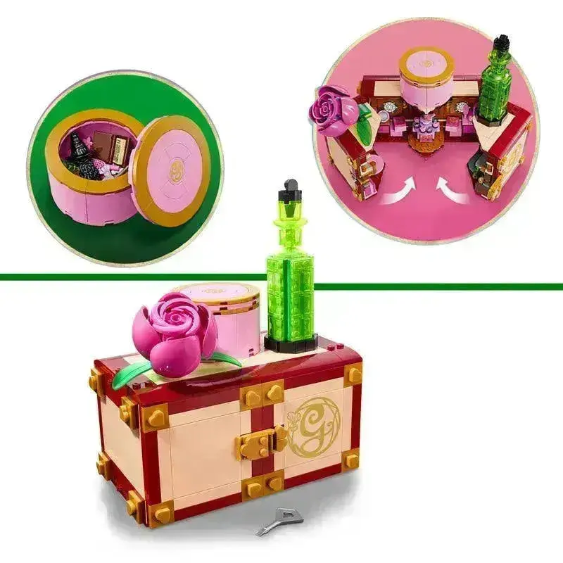 - Minifiguurtjes: De set bevat minifiguurtjes van Glinda en Elphaba, beide in hun karakteristieke pyjama’s. Daarnaast zijn er extra outfits om de personages te verkleden.
