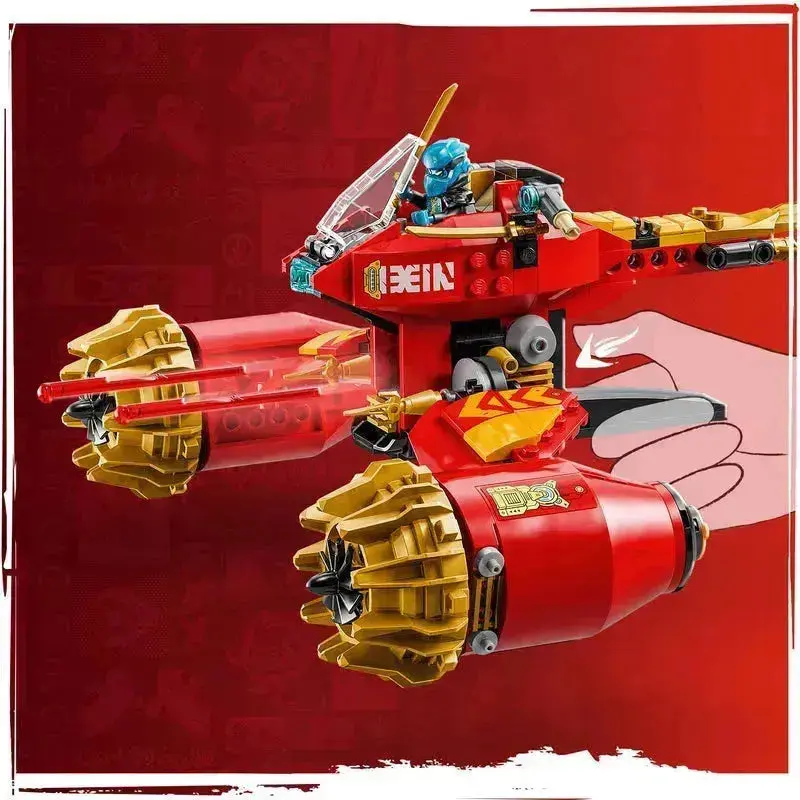 Deze indrukwekkende set van 333 onderdelen neemt je mee op een spannende reis door het NINJAGO universum. Kai, de dappere vuur-ninja, bestuurt een futuristische mech die doet denken aan een podracer uit Star Wars, maar dan met een geheel eigen NINJAGO twist.