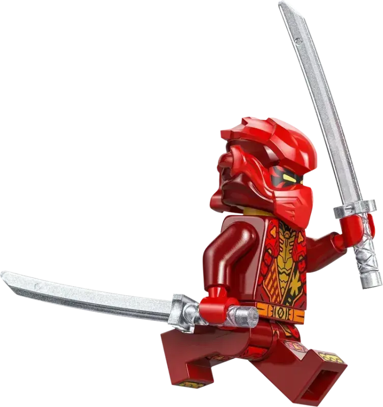 • Een uniek ontwerp: De mech van Kai is uitgevoerd in een opvallend rood kleurenschema en is uitgerust met coole details zoals gouden elementen en een groot zwaard.