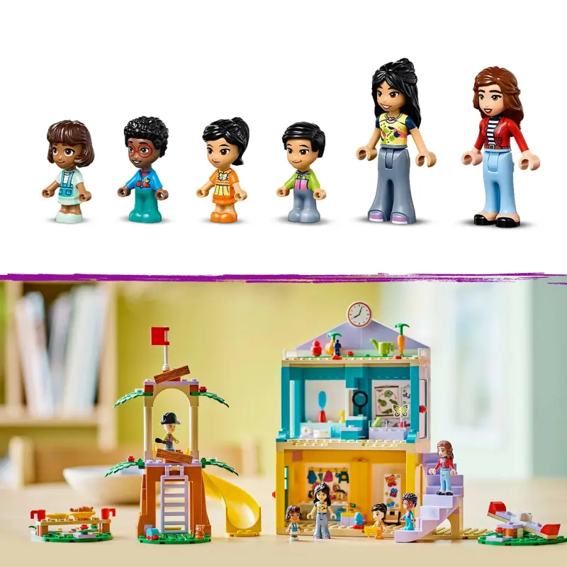 Ontdek een speelset vol verhalen voor meisjes en jongens vanaf 4 jaar. De LEGO® Friends Heartlake City kleuterschool (42636) bevat diverse creatieve accessoires waarmee kinderen een dag op de kleuterschool kunnen naspelen met de 2 minipoppetjes, 4micropoppetjes en een konijntje. Dit leerzame speelgoed zit boordevol details die zijn geïnspireerd op een echte kleuterschool.