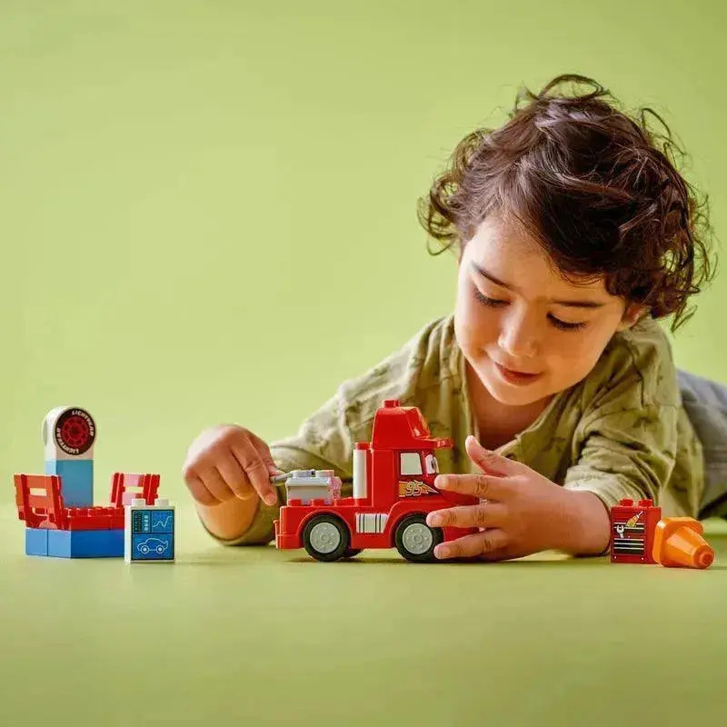 Zoektermen: LEGO Mack bij de race, DUPLO, Disney Cars, autosport speelgoed, bouwset voor peuters, LEGO voor 2 jaar, LEGO Mack, LEGO truck, LEGO Bliksem McQueen