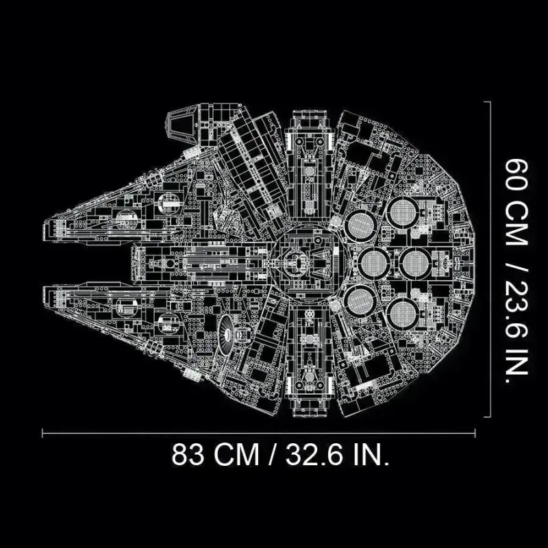 De LEGO StarWars Millennium Falcon (75192) is een waar kunstwerk voor in elke kamer. Het model is boordevol authentieke details, zoals de karakteristieke ronde vorm, de schietende laserkanonnen en het gedetailleerde interieur. Denk aan de cockpit, de smokkelwaarruimte en zelfs de beroemde Dejarik-tafel. Met zijn afmetingen van 21 cm hoog, 56 cm breed en 84 cm lang is dit een indrukwekkend displaymodel.