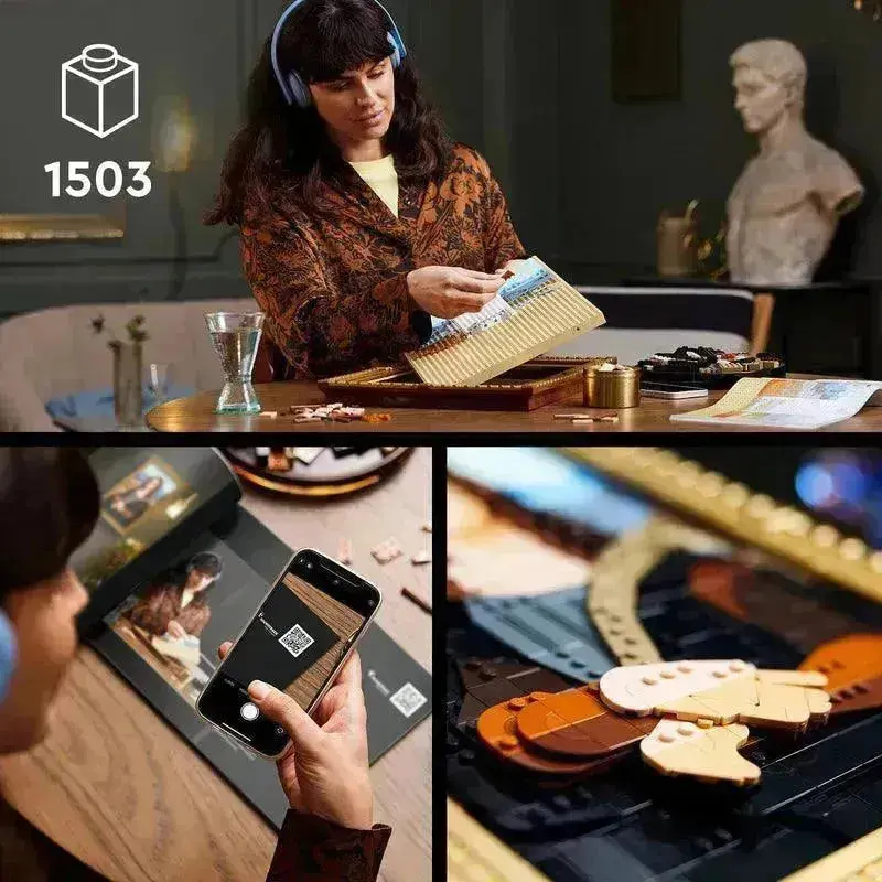 - Exclusieve lijst: De set wordt geleverd met een elegante, goudkleurige lijst die speciaal is ontworpen voor de Mona Lisa. Deze lijst kan ook worden gebruikt voor andere LEGO Art modellen.
