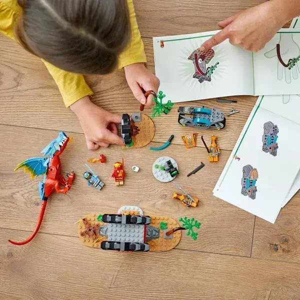Deze ninjaspeelset is speciaal ontworpen om kinderen vanaf 4 jaar een gave bouw- en speelervaring te bieden. Elk zakje stenen in de doos bevat een model en een personage om te bouwen, waardoor de actie direct kan beginnen. Inclusief een startsteen met daarop een deel van de basis om de draak snel te bouwen.