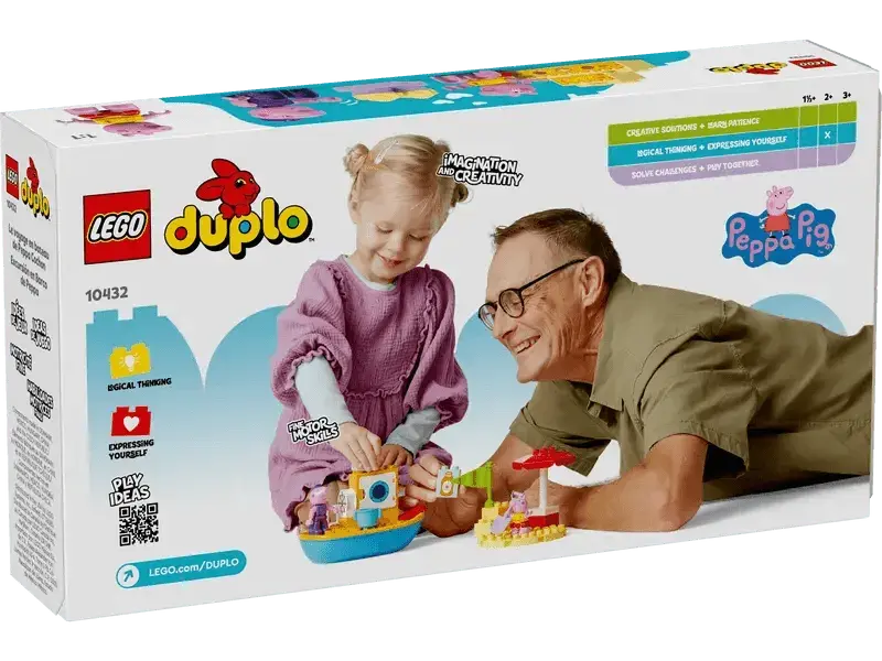 Deze LEGO® DUPLO® Peppa Pig Boot Trip (10432) set is de perfecte manier om jonge kinderen te introduceren in de wereld van LEGO stenen en Peppa Pig. Met zijn vrolijke kleuren, eenvoudige bouwwijze en herkenbare personages is deze set ideaal voor peuters van 2 jaar en ouder.