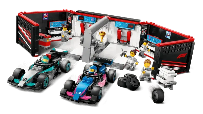 LEGO Pitbox met Mercedes AMG en Alpine F1 auto's 60444 City