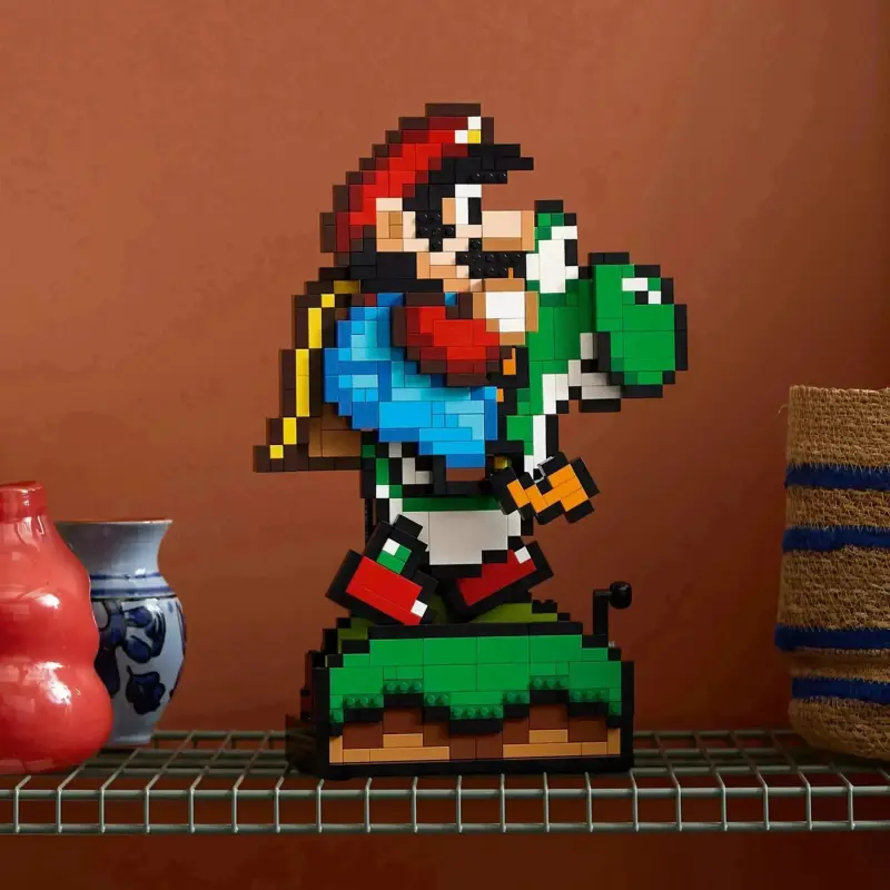 • Nostalgisch ontwerp: De set is een ode aan de pixelgraphics van de jaren 90, met gedetailleerde LEGO-versies van Mario en Yoshi.